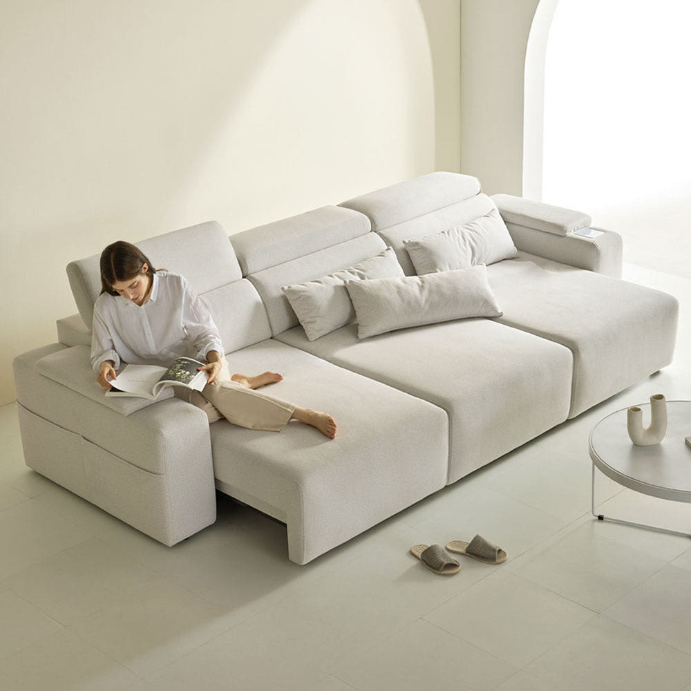 "모션 소파"라는 이름답게 리클라이너 기능이 정말 대박이에요! 버튼 하나로 쉽게 각도를 조절할 수 있어서, TV를 보거나 책을 읽을 때 너무 좋더라고요. 친구들과 영화 보려고 모여 앉으면 리클라이너 기능 덕분에 모두가 편안하게 즐길 수 있어요~✨ 물론 혼자서 피곤할 때는 눕기도 하고, 다리를 쭉 뻗기도 하니까 정말 행복하답니다!