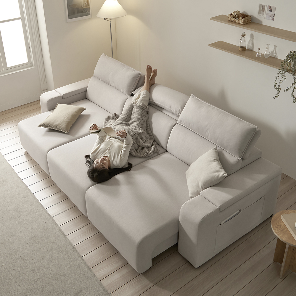 그리고 슬라이드 무빙 기능은 정말 유용해요. 소파를 쉽게 이동할 수 있어서, 청소할 때 훨씬 편하더라고요! 보통 소파가 무겁고 이동하기 힘들어서 청소하기 귀찮은데, 이건 가볍게 밀면 되니까 정말 좋았어요~ 바닥 긁힐 걱정 없이 마음껏 움직일 수 있어서 청소하는 것도 즐거웠어요! ㅎㅎ